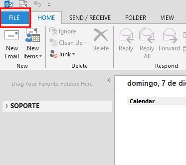 Ingrese a la opción de «Archivo» en su cliente Outlook.