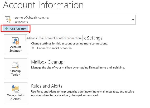 En la pantalla que aparece, seleccione «Agregar Cuenta» o bien «Configuración de la Cuenta» según sea el caso.