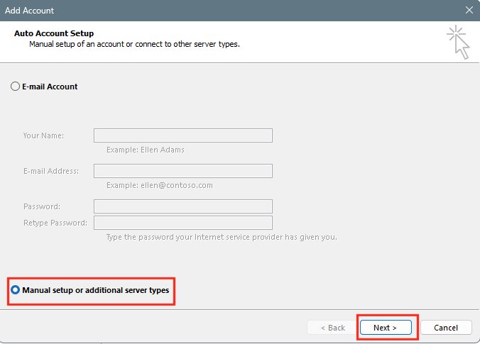 Seleccione "Configuración manual de la cuenta" y luego clic en "Siguiente"