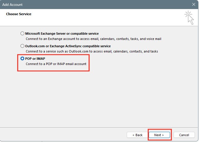 Seleccione la opción "POP o IMAP" y luego en "Sigiente"