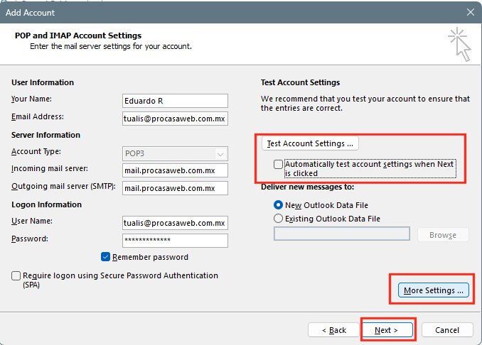 Desmarque la opción de "Probar la configuración de la cuenta"
